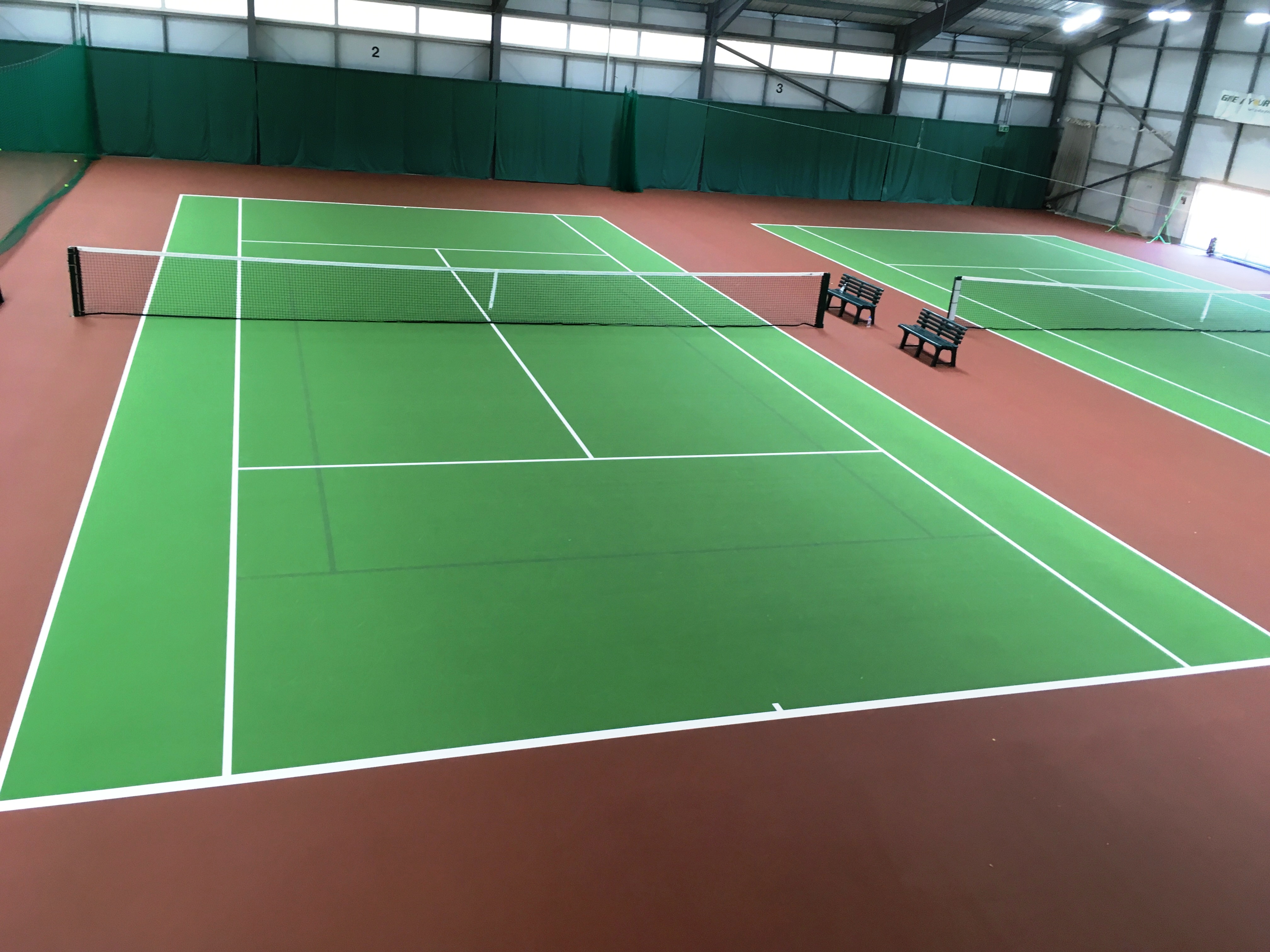 De tre inomhustennisbanor på Polo Farm var ursprungligen utrustad med 320 watt lysrör. Varje bana lystes upp med 30 lysrör med en effekt på totalt ca 9600 watt. Banorna nyttjades 14 timmar om dygnet, 7 dagar i veckan, vilket innebar att Polo Farm förbrukade över 168 779 kW per år och genererade över 75 ton i koldioxidutsläpp per år bara i tennishallen.